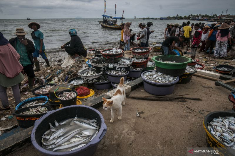 Nelayan dan pendaratan ikan di pinggir pantai. (Gambar: Antaranews)